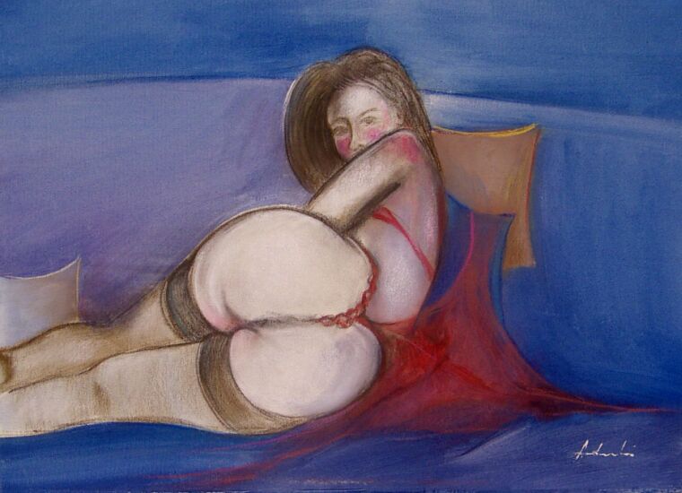 Modella allo studio (tecnica mista, 2000, 70x50)