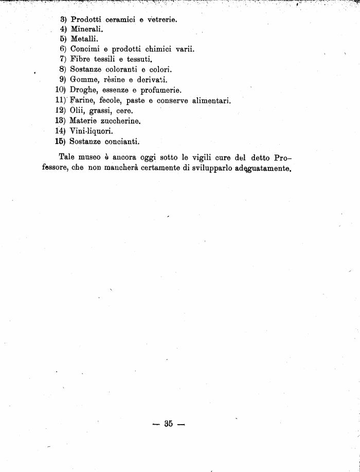 Tale museo è ancora oggi sotto le vigili cure del detto Professore, che non mancherà certamente di svilupparlo adeguatamente.