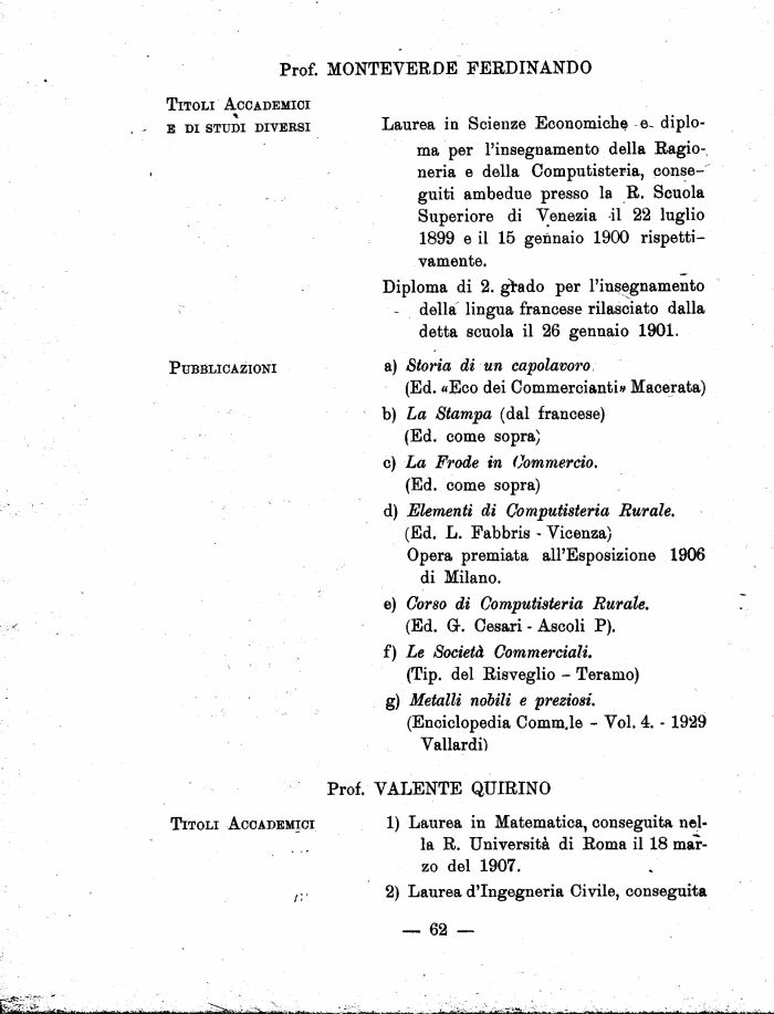 d) Elementi di Computisteria Rurale. (Ed. L. Fabbris - Vicenza)