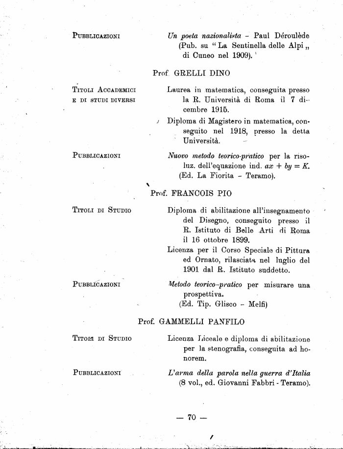 j Diploma di Magistero in matematica, conseguito nel 1918, presso la detta Università.