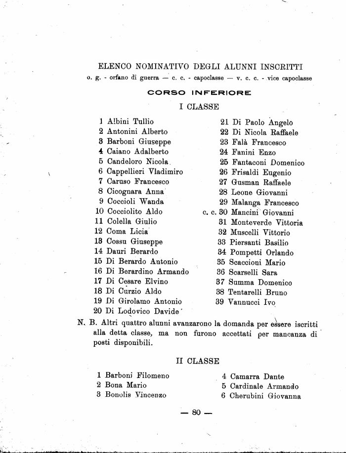 ELENCO NOMINATIVO DEGLI ALUNNI INSCRITTI o. g. - orfano di guerra — e. e. - capoclasse — v. e. e. - vice capoclasse