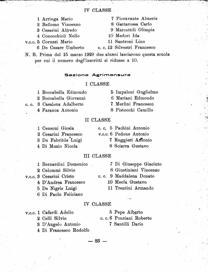 N. B. Prima del 15 marzo 1929 due alunni lasciarono questa scuola per cui il numero degl'inscritti si ridusse a 10.
