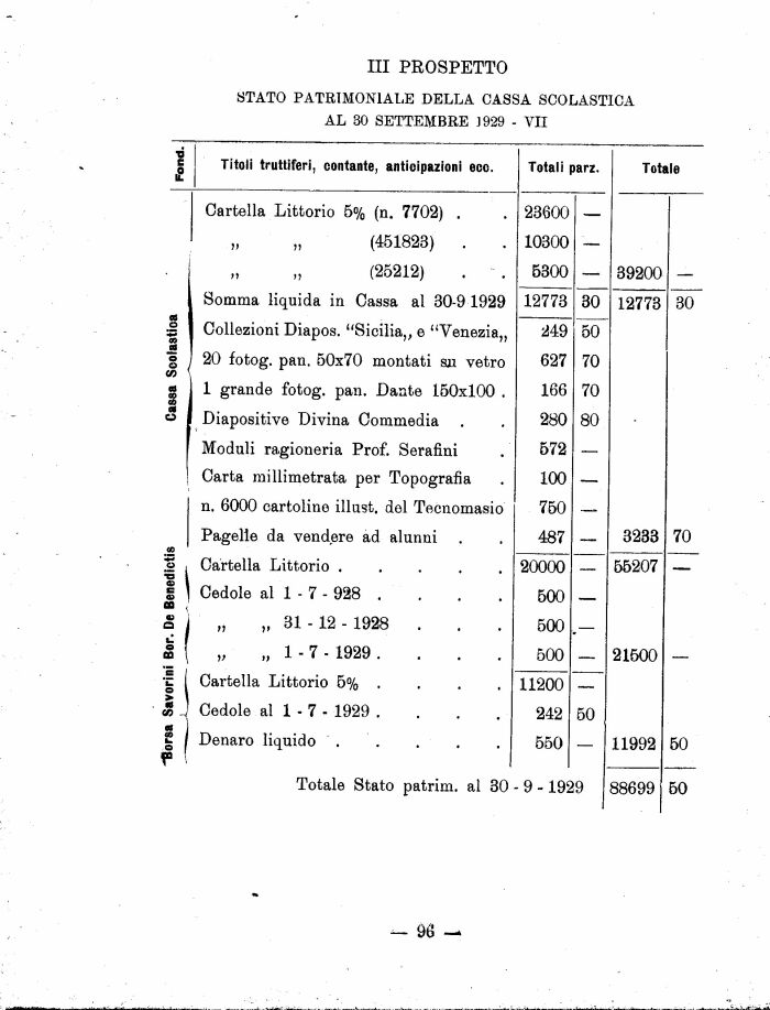 STATO PATRIMONIALE DELLA CASSA SCOLASTICA AL 30 SETTEMBRE 1929