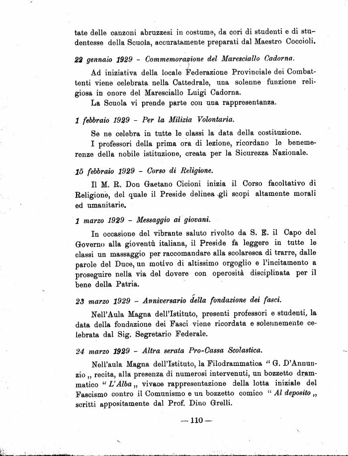 Nell'aula Magna dell'Istituto, la Filodrammatica . G. D'Annunzio ,, recita, alla presenza di numerosi intervenuti, un bozzetto drammatico . L'Alba „ vivace rappresentazione della lotta iniziale del Fascismo contro il Comunismo e un bozzetto comico . Al deposito ,, scritti appositamente dal Prof. Dino Grelli.