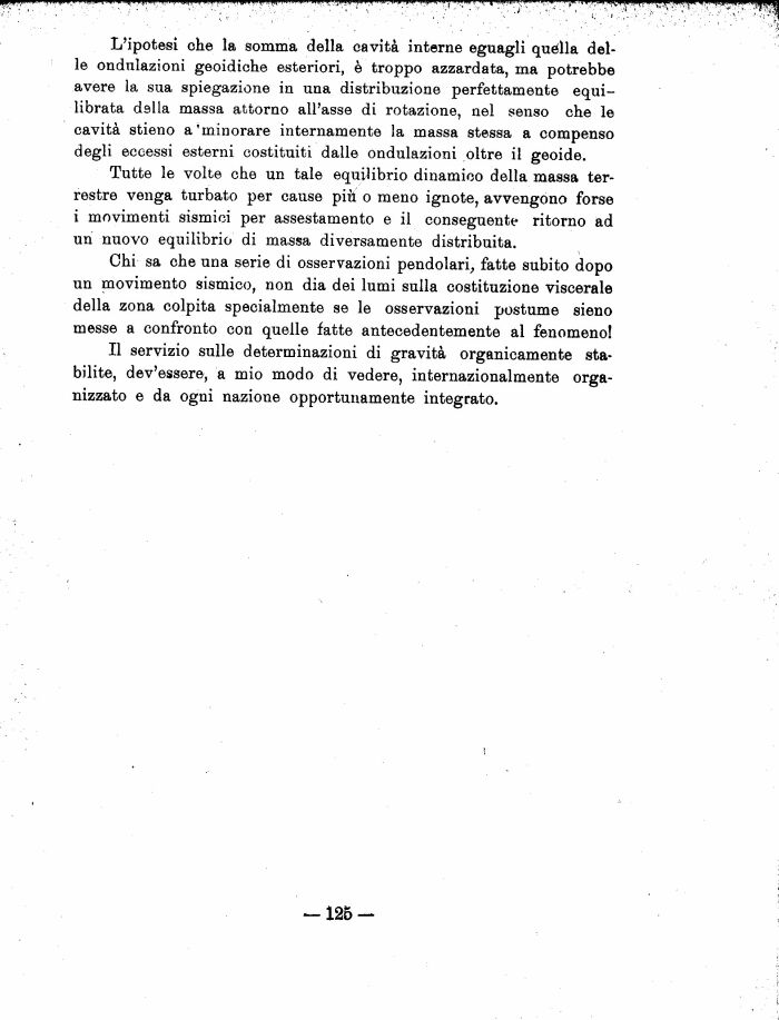 Il servizio sulle determinazioni di gravita organicamente stabilite, dev'essere, a mio modo di vedere, intemazionalmente organizzato e da ogni nazione opportunamente integrato.