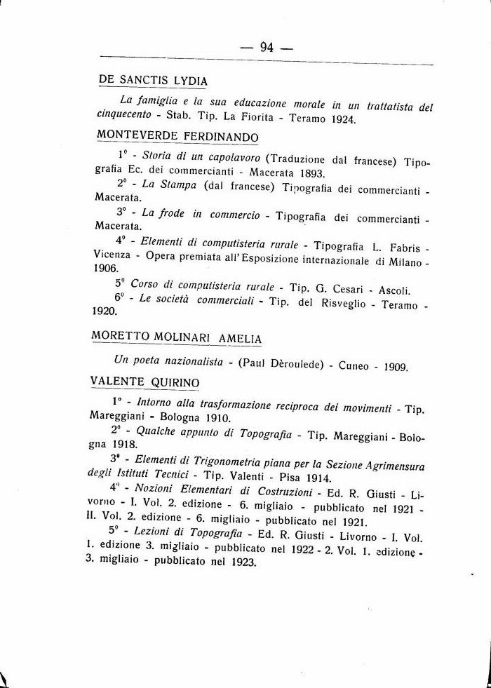 5° - Lezioni di Topografia - Ed. R. Giusti - Livorno - I. Voi. 1. edizione 3. migliaio - pubblicato nel 1922 - 2. Voi. 1. adizione -3. migliaio - pubblicato nel 1923.