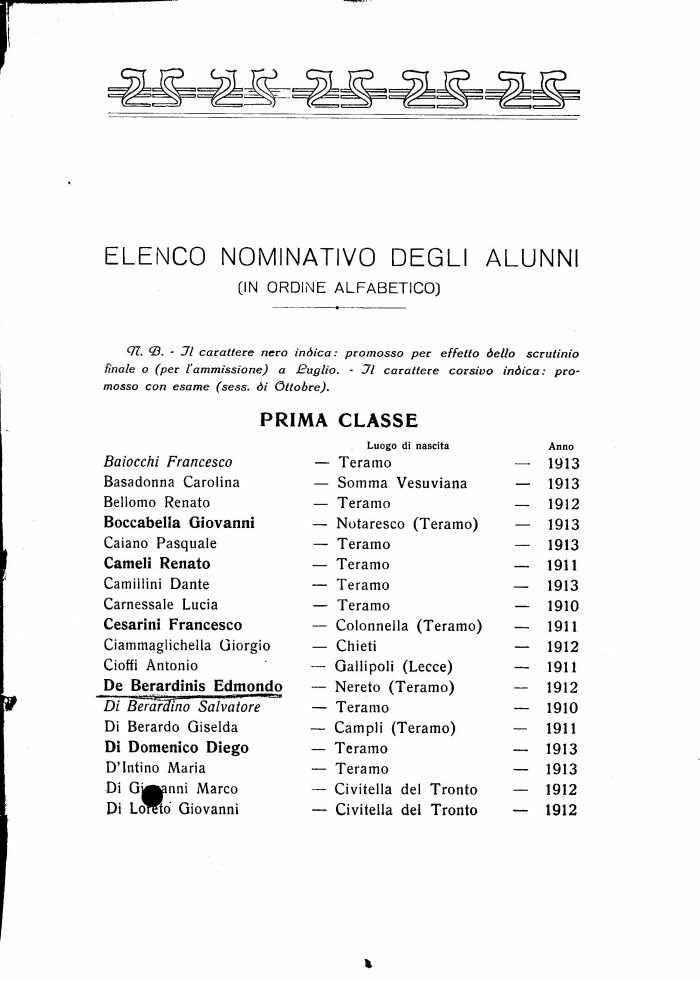 07. 0. - J7/ carattere nero indica: promosso per effetto σello scrutinio finale o (per l'ammissione) a Puglia. - Jl carattere corsivo indica: promosso con esame (sess. σi Ottobre).