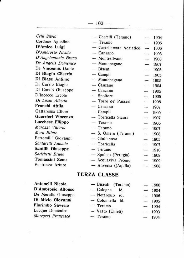 Celli Silvio Cordone Agostino D'Amico Luigi D'Ambrosio Nicola D'Angelantonio Bruno De Angelis Domenico De Vincentiis Dante Di Biagio Clicerio Di Biase Antimo Di Curzio Biagio Di Curzio Giuseppe D'Incecco Θrcole Di Lazio Alberto Franchi Attila Gattarossa Ettore Guerrieri Vincenzo Lucchese Filippo Marozzi Vittorio Moro Ettore Petromilli Giovanni Santarelli Anlonio Santilli Giuseppe Sorichetti Bruno Tomassini Zeno Ventresca Arturo