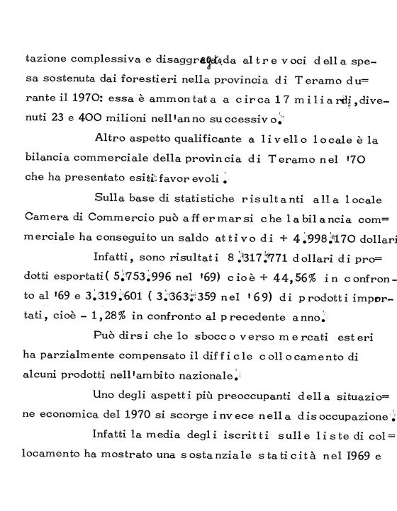 Altro aspetto qualificante a livello locale è la bilancia commerciale della provincia di Teramo nel '70 che ha presentato esitit favor evoli .