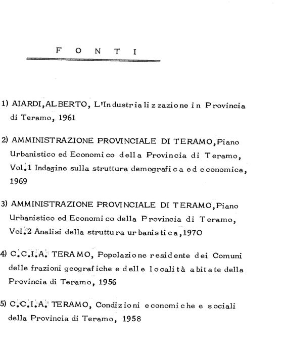 2) AMMINISTRAZIONE PROVINCIALE DI TERAMO,Piano Urbanistico ed Economi co della Provincia di Teramo, Vol.l Indagine sulla struttura demografica ed economica, 1969