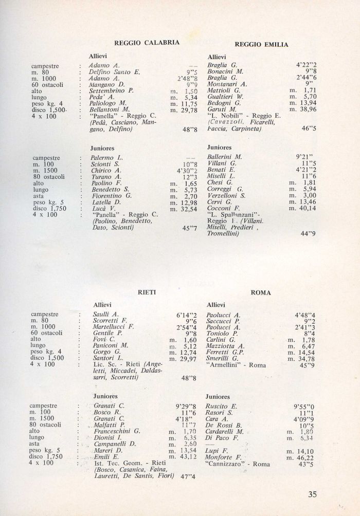 ni. 32'54 Cocconi F. m. 40,14 'L. SpaUanzani'-Reggio I . (Villani. 45 '7 Miselli, Predierì ,