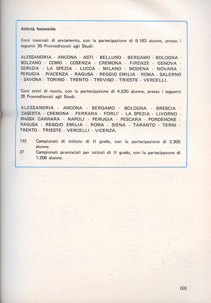 Corsi invernali di avviamento, con la partecipazione di 9.163 alunne, presso i seguenti 30 Provveditorati agii Studi:
