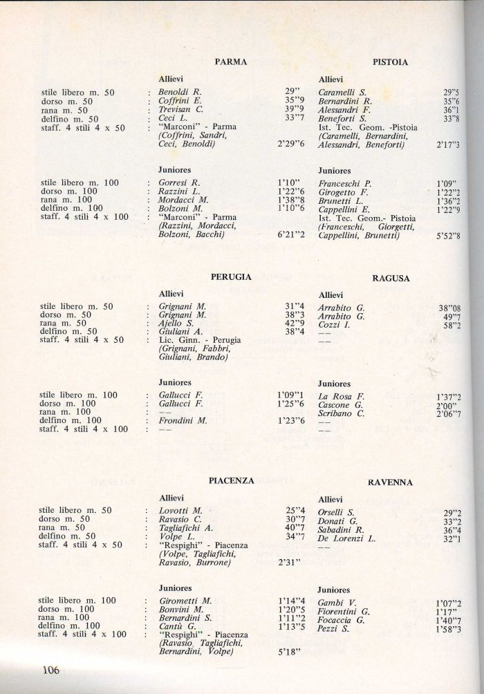 stile libero m. 100 dorso m. 100 rana m. 100 delfino m. 100 staff. 4 stili 4 x 100