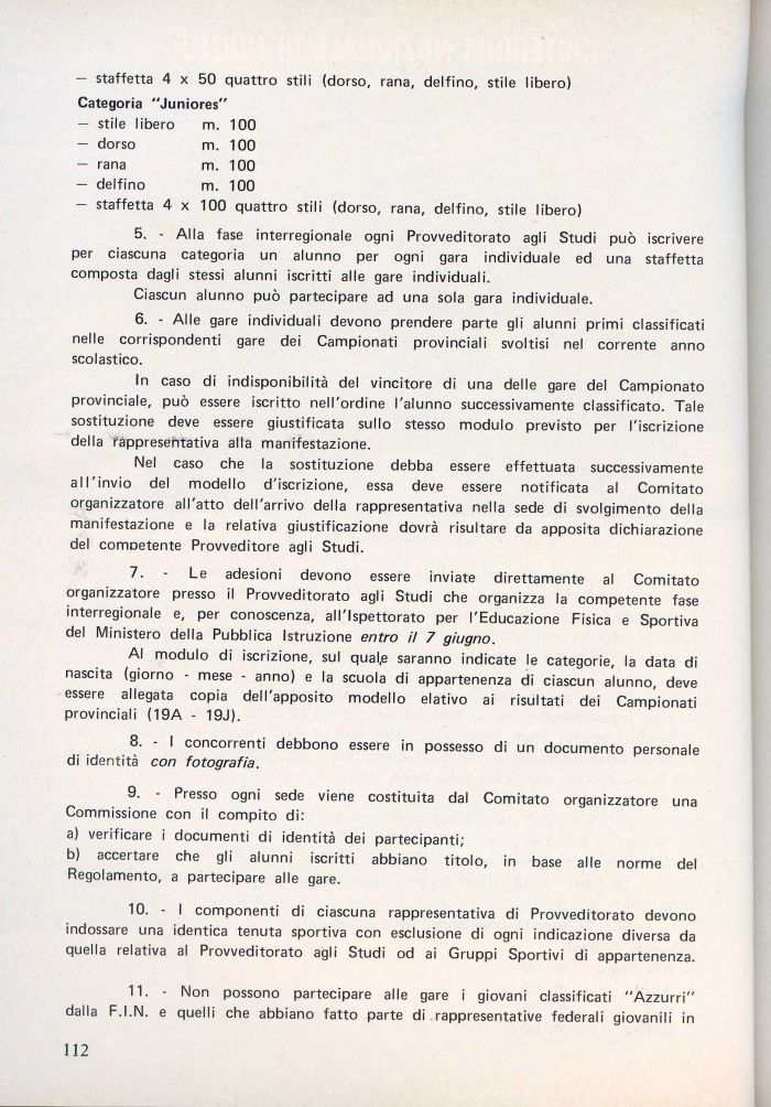 6. - Alle gare individuali devono prendere parte gli alunni primi classificati nelle corrispondenti gare dei Campionati provinciali svoltisi nel corrente anno scolastico.