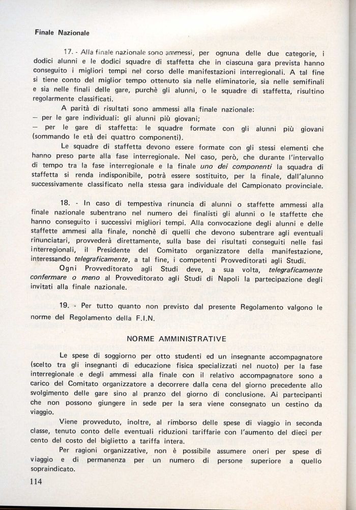 Ogni Provveditorato agli Studi deve, a sua volta, telegraficamente confermare o meno al Provveditorato agli Studi di Napoli la partecipazione degli invitati alla finale nazionale.