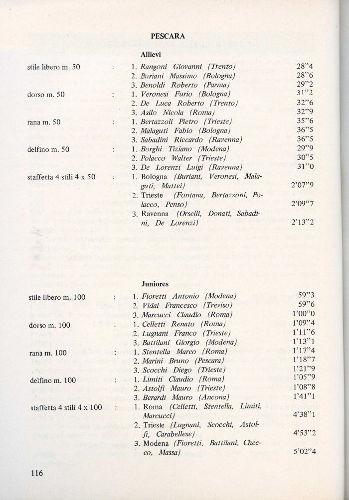 1. Bologna (Buriani, Veronesi, Malaguti, Mattei) 2'07'9