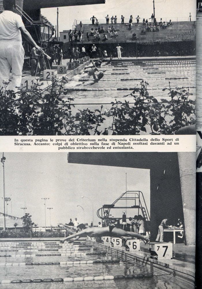 In questa pagina le prove del Criterium nella stupenda Cittadella dello Sport di Siracusa. Accanto: colpi di obiettivo sulla fase di Napoli svoltasi davanti ad un pubblico strabocchevole ed entusiasta.