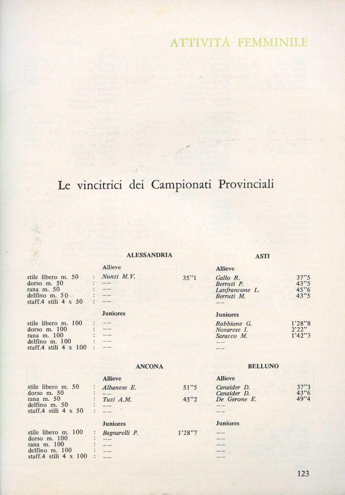 stile libero m. 50 : Albanese E. dorso m. 50 : —