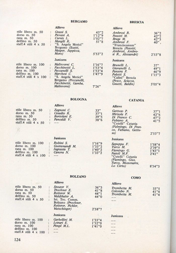 dorso m. 100 Facchinetti L. l'53'4 Giovanetti L. 49'1