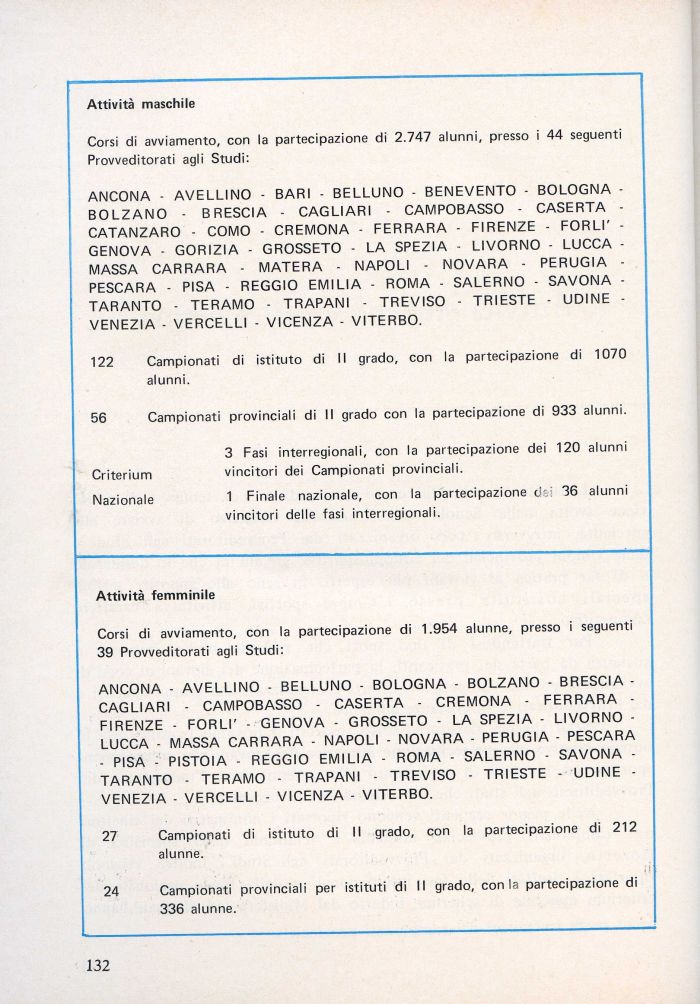 Stai consultando: 'Attività Sportiva Scolastica 1972 Annuario dell'Ispettorato per l'Educazione Fisica e Sportiva', Ministero della Pubblica Istruzione