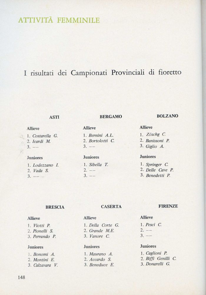 I risultati dei Campionati Provinciali di fioretto
