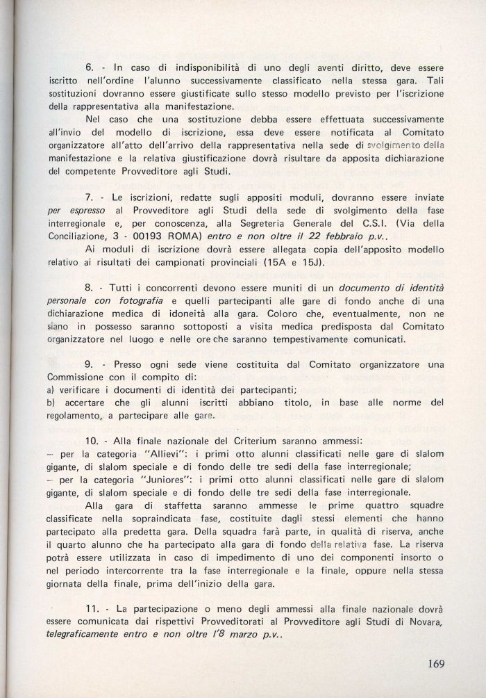 11. - La partecipazione o meno degli ammessi alla finale nazionale dovrà essere comunicata dai rispettivi Provveditorati al Provveditore agli Studi di Novara, telegraficamente entro e non oltre l'8 marzo p.v..