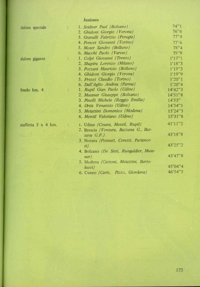 6. Macchi Paolo (Varese) 79'9 slalom gigante : 1. Colpi Giovanni (Trento) 1*17' 1