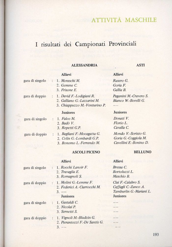 I risultati dei Campionati Provinciali