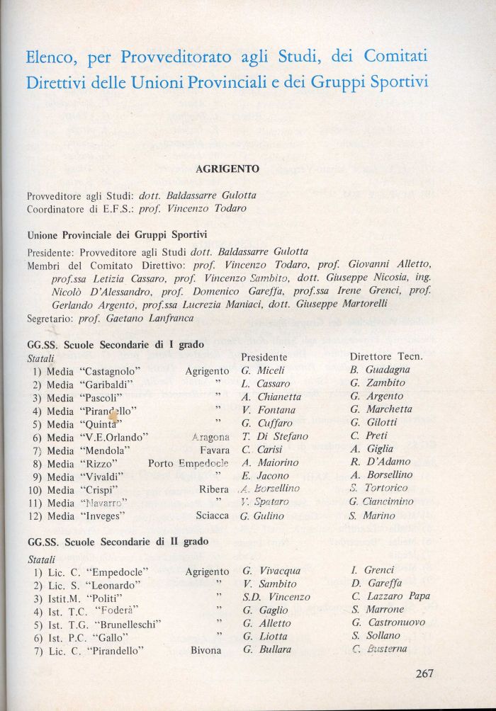Elenco, per Provveditorato agli Studi, dei Comitati Direttivi delle Unioni Provinciali e dei Gruppi Sportivi