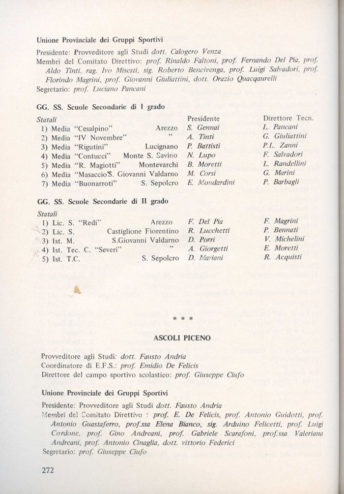 Membri del Comitato Direttivo r prof. E. De Felicis, prof. Antonio Guidotti, prof. Antonio Guastaferro, prof.ssa Elena Bianco, sig. Arduino Felicetti, prof. Luigi Cordone, prof. Gino Andreani, prof. Gabriele Scarafoni, prof.ssa Valeriana Andreani, prof. Antonio Cinaglia, dott. Vittorio Federici Segretario: prof. Giuseppe Ciufo