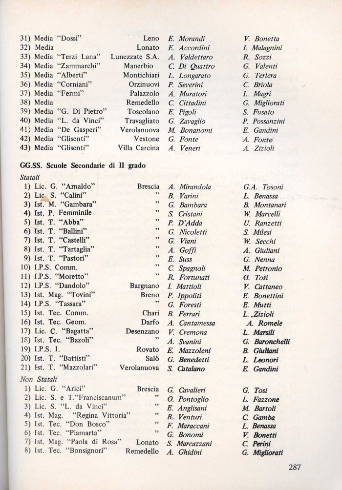1) Lic. G. 'Arici' Brescia G. Cavalieri G. Tosi
