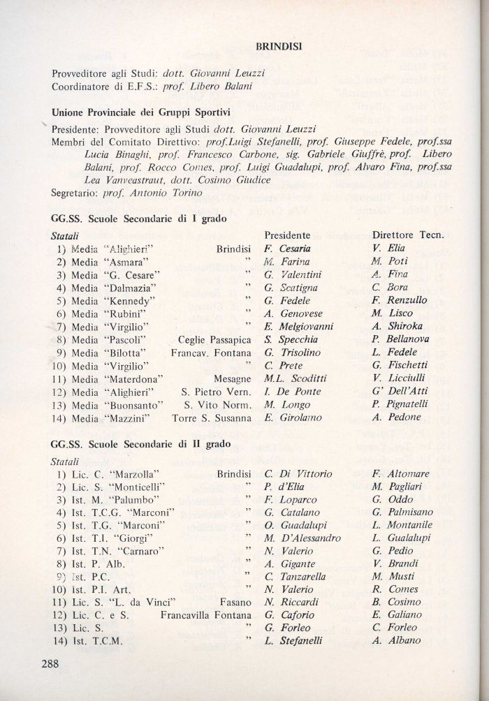 1) Lic. C. 'Marzolla' Brindisi C. Di Vittorio F. Altomare