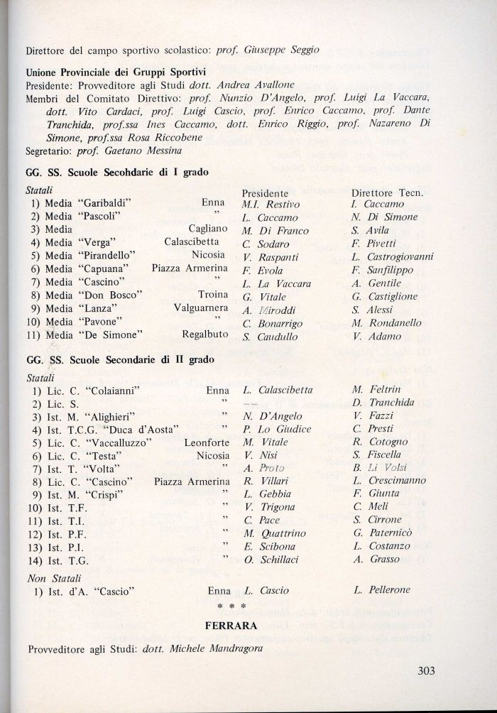 1) Lic. C 'Colaianni' Enna L. Calascibetta M. Feltrin