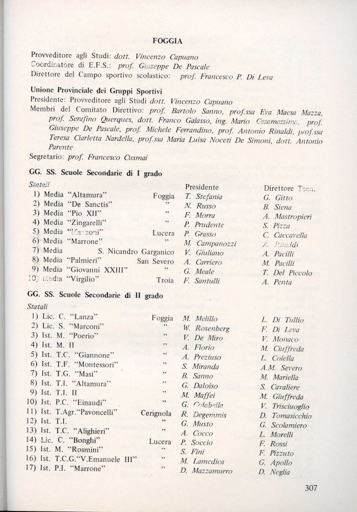 1) Lic. C. 'Lanza' Foggia M. Melillo L. Di Tullio