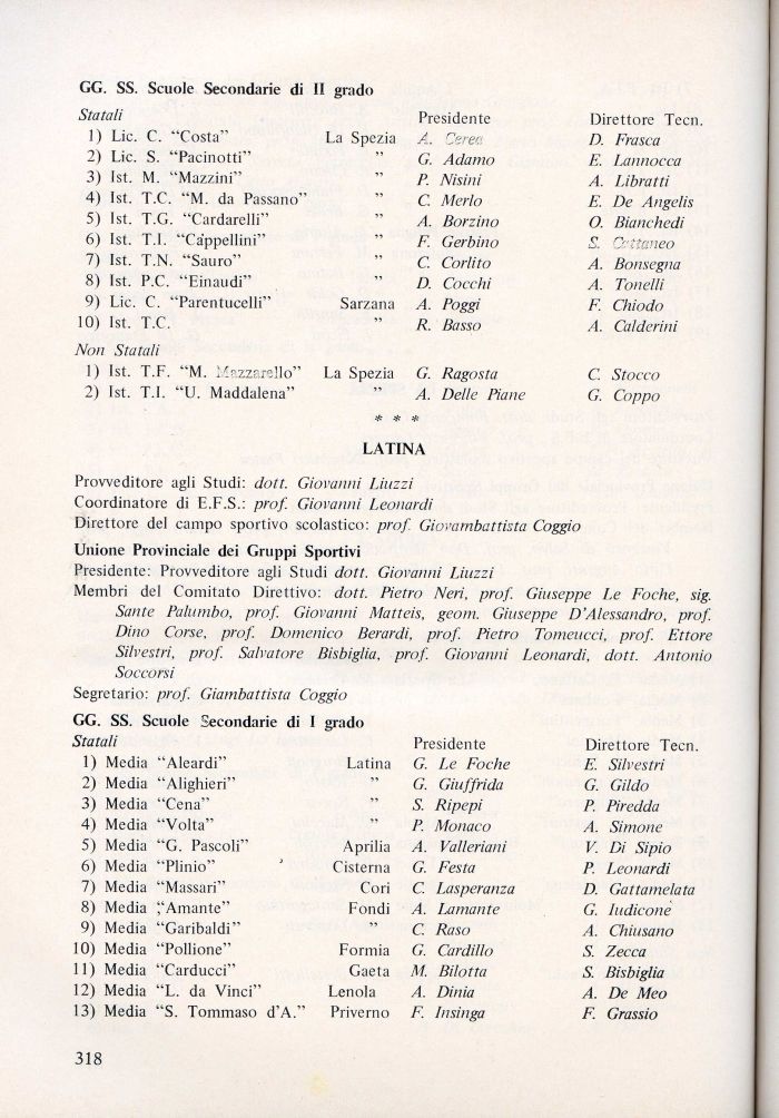 Membri del Comitato Direttivo: dott. Pietro Neri, prof. Giuseppe Le Foche, sig. Sante Palumbo, prof Giovanni Matteis, geom. Giuseppe D'Alessandro, prof. Dino Corse, prof. Domenico Berardi, prof. Pietro Tomeucci, prof. Ettore Silvestri, prof. Salvatore Bisbiglia, prof. Giovanni Leonardi, dott. Antonio