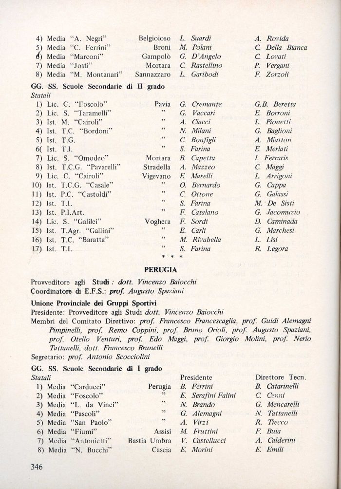 Provveditore agli Studi : dott. Vincenzo Baiocchi Coordinatore di E.F.S.: prof. Augusto Spaziani