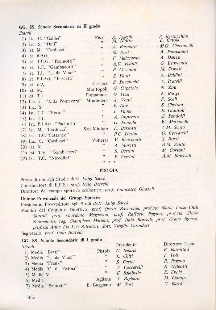 Membri del Comitato Direttivo: prof. Oreste Soverchia, prof.ssa Maria Luisa Oliti Santoli, prof. Giordano Magazzini, prof. Raffaele Pagano, prof.ssa Gloria Scorcelletti, rag. Giampiero Mariani, prof. Italo Borrelli, prof Orano Ignesti, prof.ssa Anna Lia Livi Salvatori, dott. Virgilio Carradori Segretario: prof. Italo Borrelli