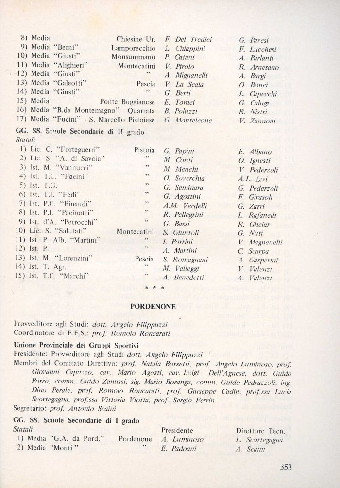 Provveditore agli Studi: dott. Angelo Filippuzzi Coordinatore di E.F.S.: prof. Romolo Roncanti