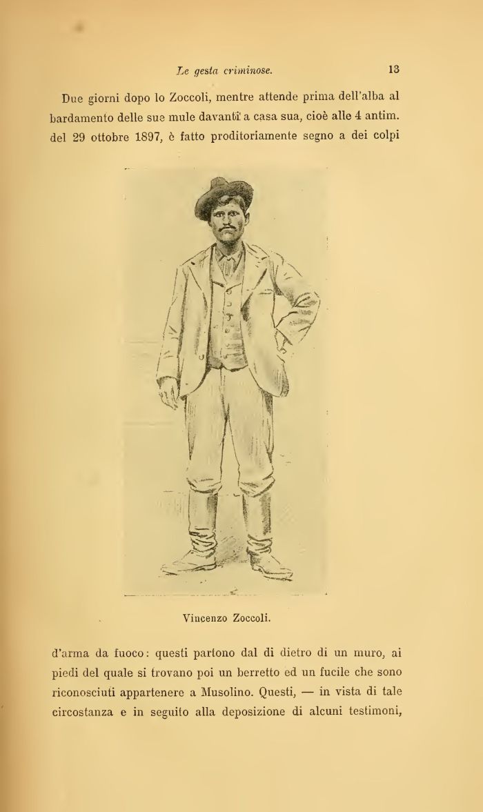 Due giorni dopo lo Zoccoli, mentre attende prima dell'alba al bardamento delle sue mule davanti! a casa sua, cioč alle 4 antim. del 29 ottobre 1897, č fatto proditoriamente segno a dei colpi
