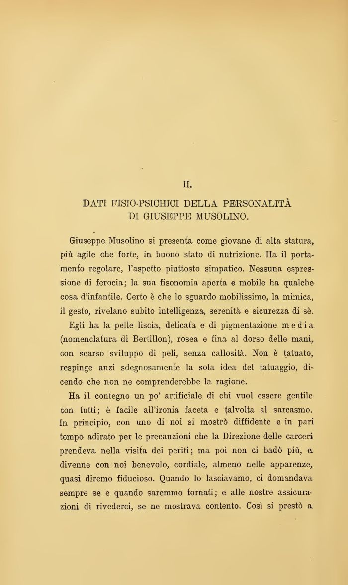 DATI FISIO-PSIOHICI DELLA PERSONALITÀ DI GIUSEPPE MUSOLINO.
