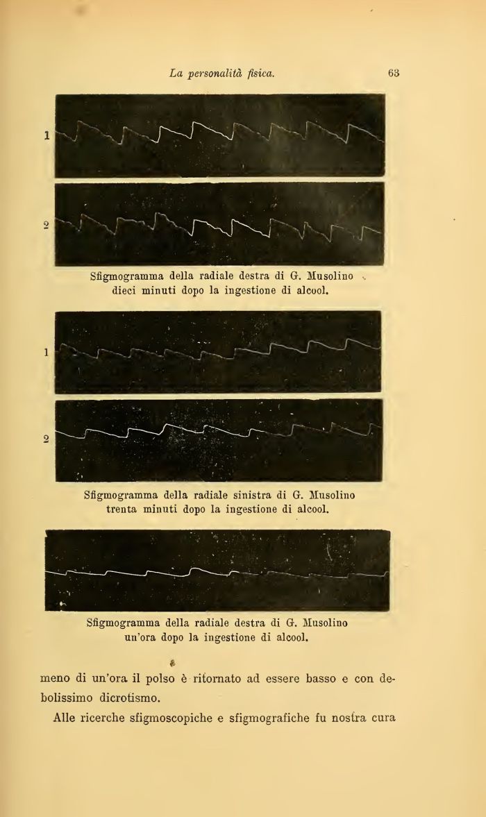 Sfigmogramma della radiale destra di G. Musolino un'ora dopo la ingestione di alcool.
