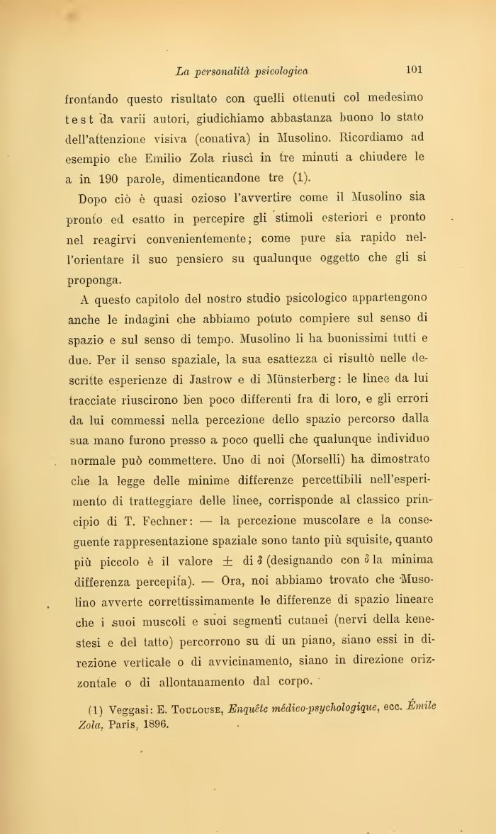 fi) Veggasi: E. Toulouse, Enquéte médico-psychologique, eoo. Emile Zola. Paris, 1896.