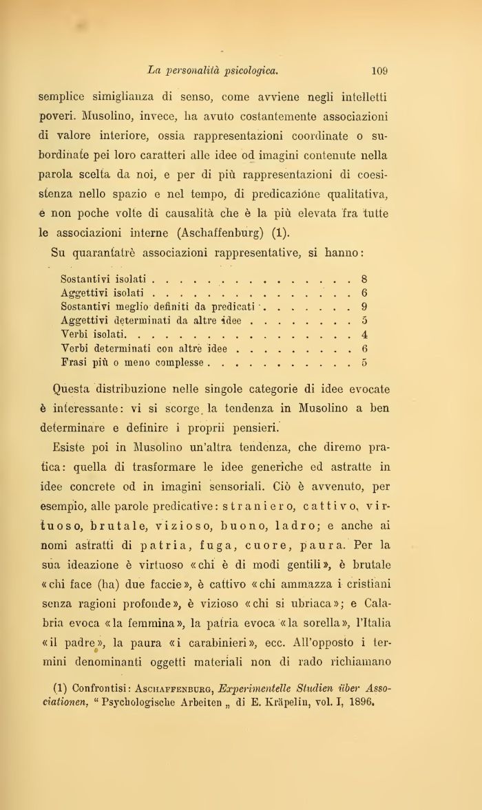 (1) Confrontisi : Aschaffenbukg, Experimentelle Studien ilber 4sso-ciationen, Psychologisclie Arbeitcn „ di E. Krapelin, voi. I, 1896.