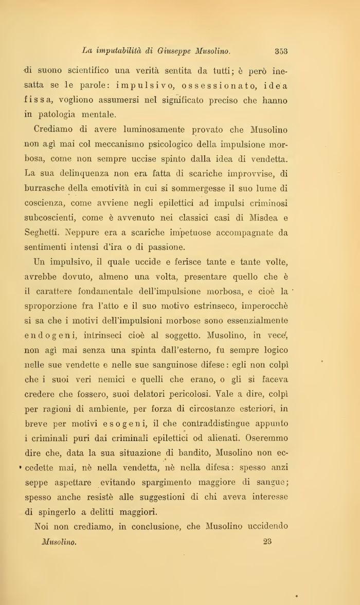 Noi non crediamo, in conclusione, che Musolino uccidendo Musolino. 23