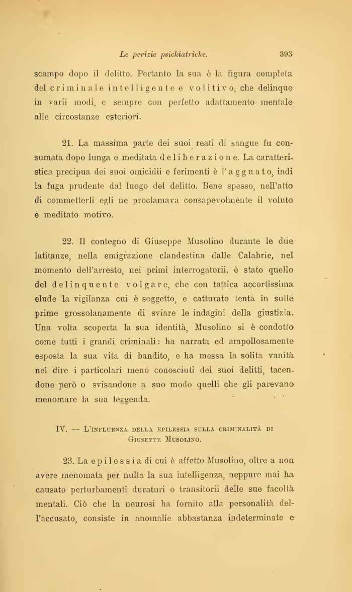 IV. — L'influenza della epilessia sulla criminalità di Giuseppe Musolino.
