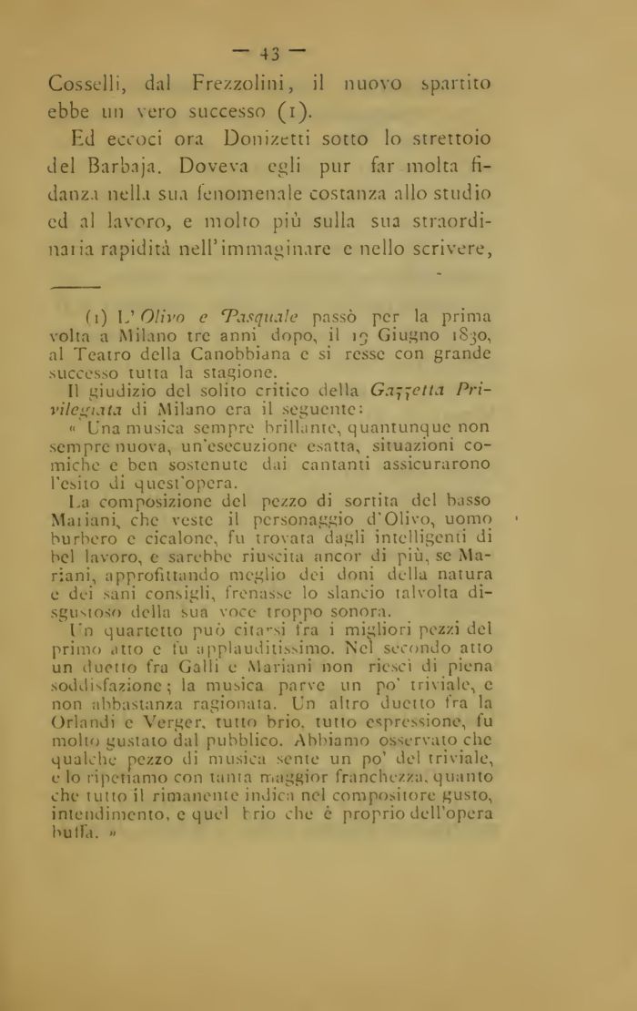 fi) L'Olivo e 'Pasquale passò per la prima volta a Milano tre anni dopo, il 19 Giugno 1830, al Teatro della Canobbiana e si resse con grande successo tutta la stagione.