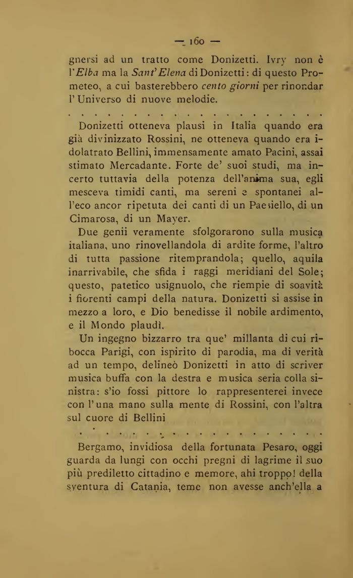 gnersi ad un tratto come Donizetti. Ivry non è V Elba ma la Sant' Elena di Donizetti: di questo Prometeo, a cui basterebbero cento giorni per rinondar F Universo di nuove melodie.