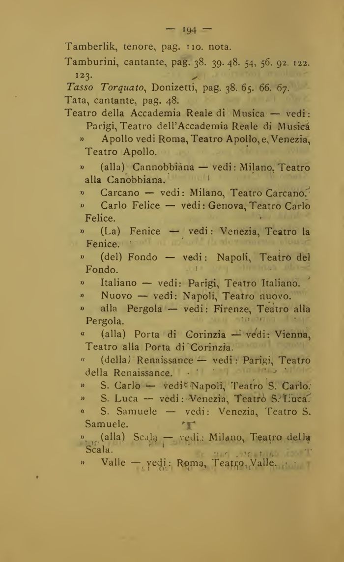 Tasso Torquato, Donizetti, pag. 38. 65. 66. 67. Tata, cantante, pag. 48.
