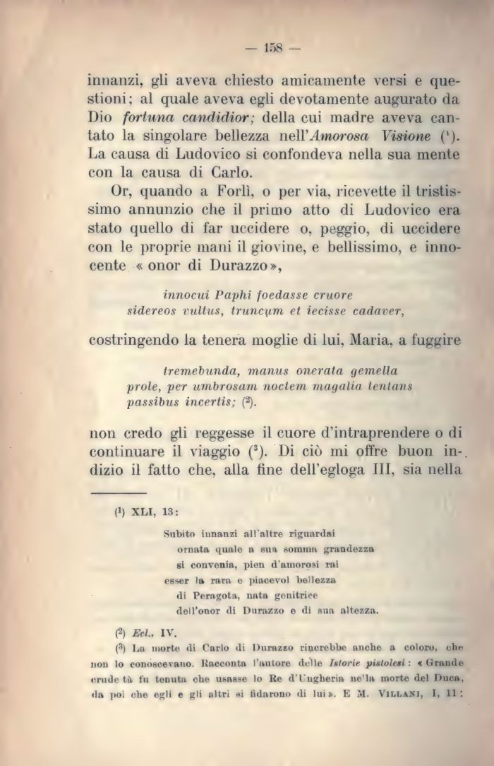 innanzi, gli aveva chiesto amicamente versi e questioni ; al quale aveva egli devotamente augurato da Dio fortuna candidior; della cui madre aveva cantato la singolare bellezza nell'Amorosa Visione ('). La causa di Ludovico si confondeva nella sua mente con la causa di Carlo.