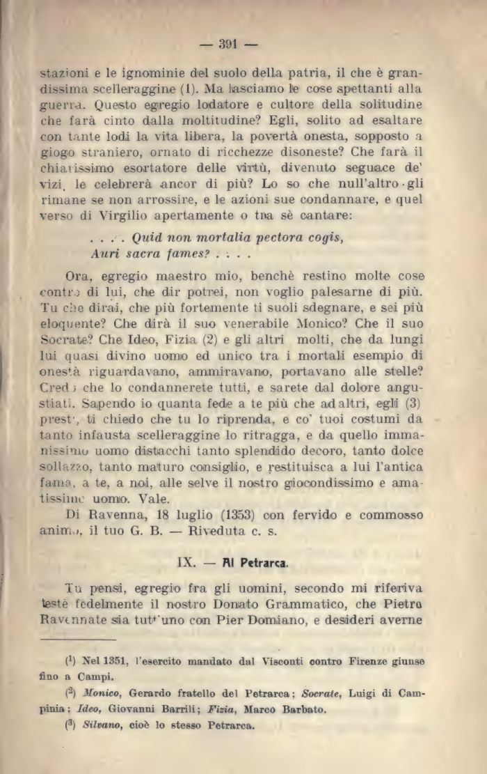 (3) Monico, Gerardo fratello del Petrarca : Socrate, Luigi di Campirli» ; Ideo, Giovanni Barrili ; Fisia, Marco Barbato. (3) Silvano, cioè lo stesso Petrarca.